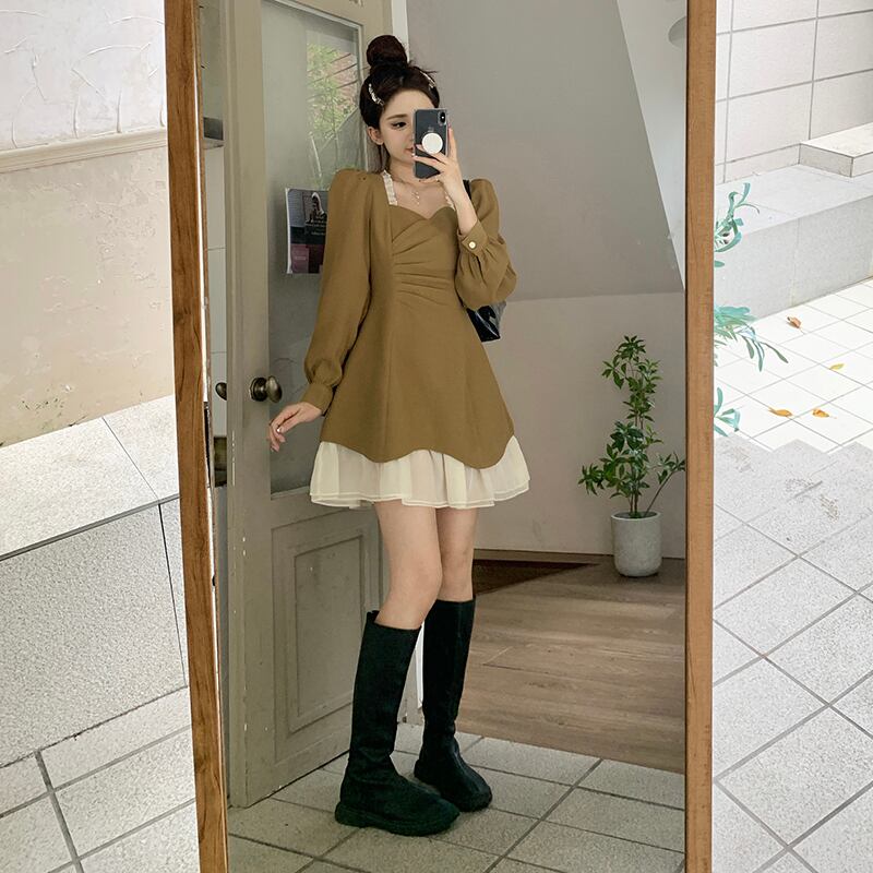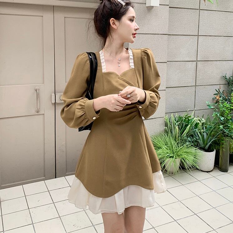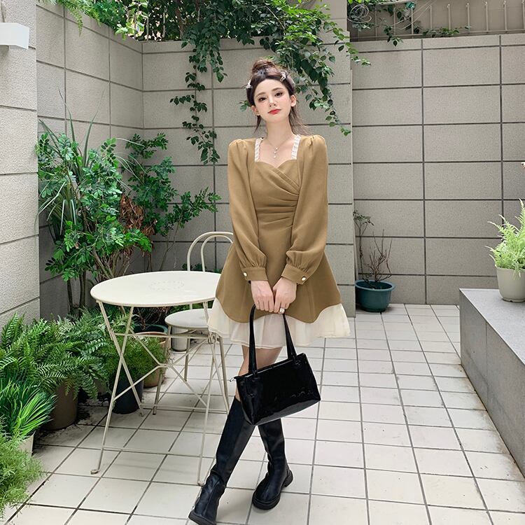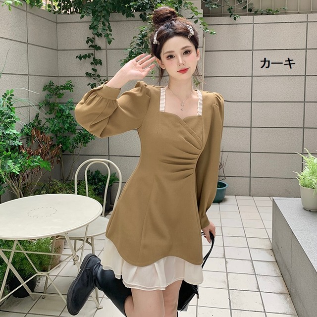 【送料無料】レディース パフスリーブ ワンピース ドレス ミニワンピース レイヤード風 ドレープ スクエアネック お呼ばれ パーティー 大きいサイズ 大人可愛い ママコーデ ママファッション 韓国系 オルチャン 人気 トレンド 新作 20代 30代 40代 きれいめ レトロ シンプル お出かけ デート おしゃれ 通勤 通学 オフィス OL デイリー 普段着 ラフ カジュアル フェミニン シック ゆったり 体型カバー 着痩せ 着回し インスタ映え 春 秋 冬 CO4755