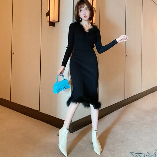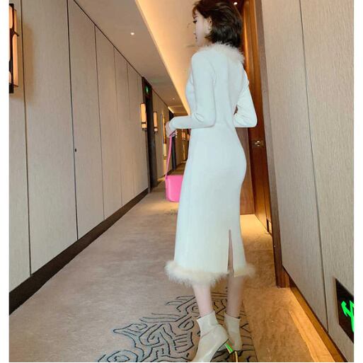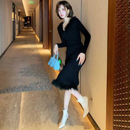 【送料無料】レディース ファー コンビ フロントタック ニット ワンピース 2COLORS フォーマル お呼ばれ パーティー 大きいサイズ 大人可愛い ママコーデ ママファッション 韓国系 オルチャン 人気 トレンド 新作 20代 30代 40代 きれいめ レトロ シンプル お出かけ デート おしゃれ 通勤 通学 オフィス OL デイリー 普段着 ラフ カジュアル フェミニン シック ゆったり 体型カバー 着痩せ 着回し インスタ映え 春 秋 冬 CO4761