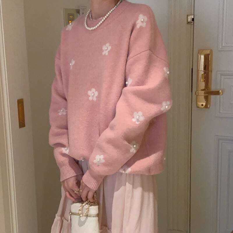 【送料無料】レディース パール フラワー ニット プルオーバー ドロップショルダー 花柄 大人可愛い ママコーデ ママファッション 韓国系 オルチャン 人気 トレンド 新作 20代 30代 40代 きれいめ レトロ シンプル お出かけ デート おしゃれ 通勤 通学 オフィス OL デイリー 普段着 ラフ カジュアル フェミニン シック ゆったり 体型カバー 着痩せ 着回し インスタ映え 春 秋 冬 CO4772