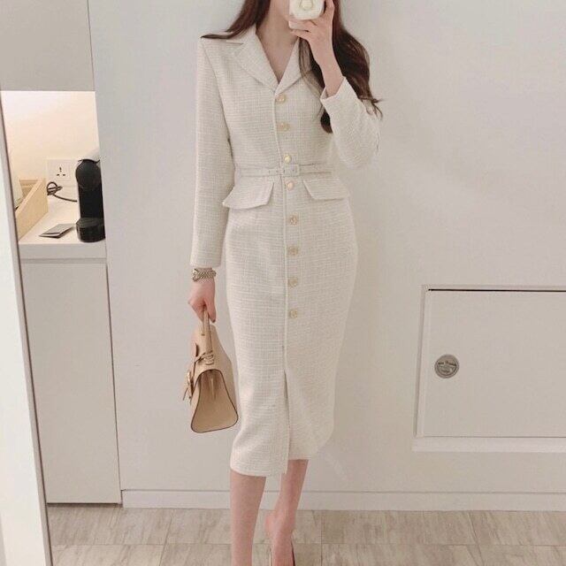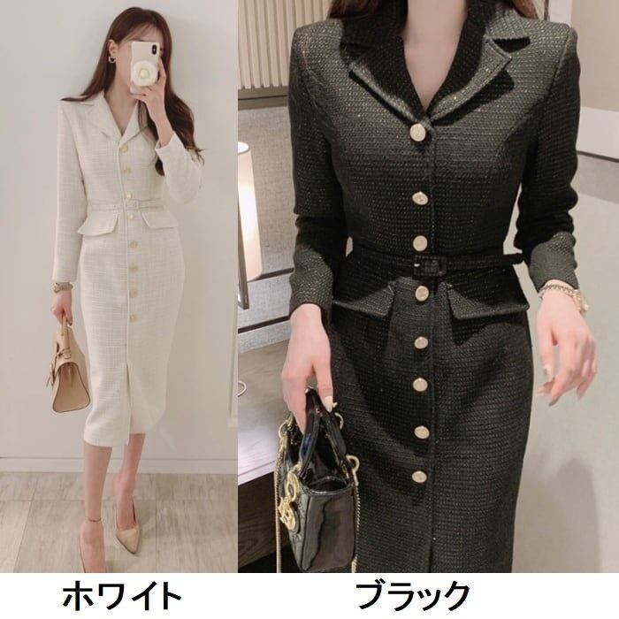 【送料無料】レディース ベルト付き テーラード タイトワンピース ワンピース 2色 ツイード フロントボタン お呼ばれ フォーマル パーティー 大人可愛い ママコーデ ママファッション 韓国系 オルチャン 人気 トレンド 新作 20代 30代 40代 きれいめ レトロ シンプル お出かけ デート おしゃれ 通勤 通学 オフィス OL デイリー 普段着 ラフ カジュアル フェミニン シック ゆったり 体型カバー 着痩せ 着回し インスタ映え 春 秋 冬 CO4800