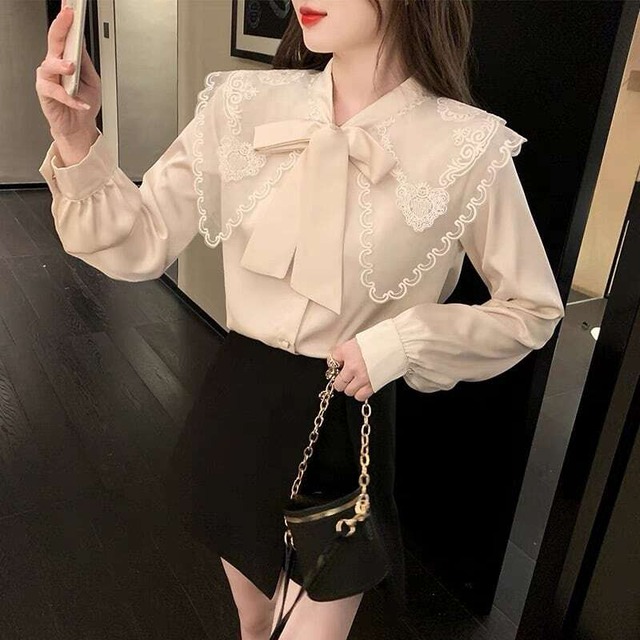 【送料無料】レディース レース リボン ブラウス ビンテージ サテンレース 襟大人可愛い ママコーデ ママファッション 韓国系 オルチャン 人気 トレンド 新作 20代 30代 40代 きれいめ レトロ シンプル お出かけ デート おしゃれ 通勤 通学 オフィス OL デイリー 普段着 ラフ カジュアル フェミニン シック ゆったり 体型カバー 着痩せ 着回し インスタ映え 春 秋 冬 CO4824