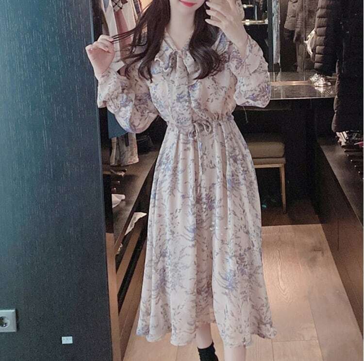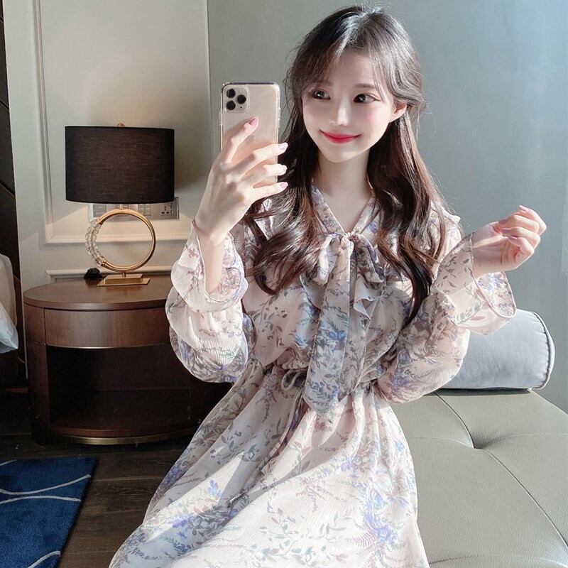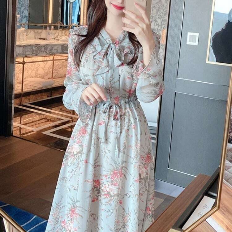 【送料無料】レディース ワンピース 花柄 膝下 ミディアム丈 袖あり 長袖 フレア シフォンリボンタイ ウエストリボン お呼ばれ パーティー 大人可愛い ママコーデ ママファッション 韓国系 オルチャン 人気 トレンド 新作 20代 30代 40代 きれいめ レトロ シンプル お出かけ デート おしゃれ 通勤 通学 オフィス OL デイリー 普段着 ラフ カジュアル フェミニン シック ゆったり 体型カバー 着痩せ 着回し インスタ映え 春 秋 冬 CO4835