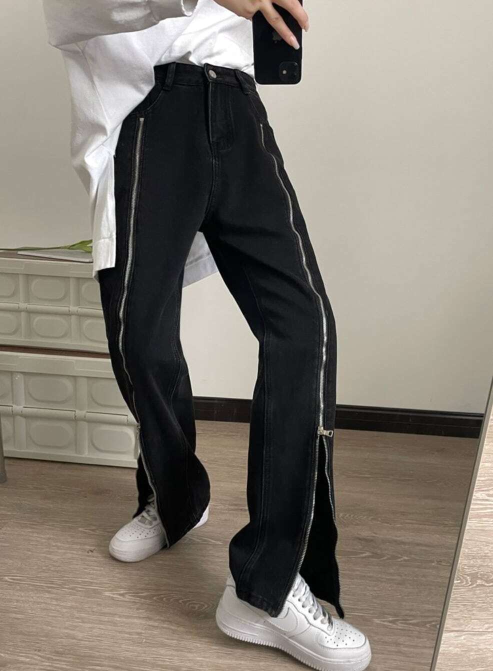 【送料無料】レディース パンツ 2WAY ジップ ビッグスリット デニムパンツ ストレートデニム ハイウエスト ジーンズ 大人可愛い ママコーデ ママファッション 韓国系 オルチャン 人気 トレンド 新作 20代 30代 40代 きれいめ レトロ シンプル お出かけ デート おしゃれ 通勤 通学 オフィス OL デイリー 普段着 ラフ カジュアル フェミニン シック ゆったり 体型カバー 着痩せ 着回し インスタ映え 春 夏 秋 CO4863
