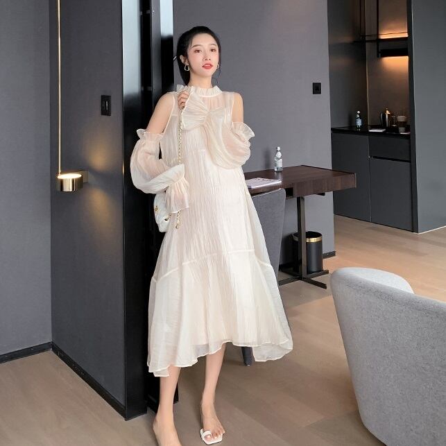 【送料無料】マタニティ ワンピース ドレス シフォン ひざ丈 オフショル フリル 透け感 お呼ばれ パーティー フォーマル 結婚式 レディース 可愛い ママコーデ ママファッション ママ服 マタニティウェア 人気 ゆったり 大きいサイズ デイリー 普段着 お出かけ おしゃれ シンプル 無地 きれいめ カジュアル フェミニン シック 体型カバー 着痩せ 着回し お宮参り マタニティフォト 通勤 妊婦服 産前 産後 春 夏 秋 CO4882
