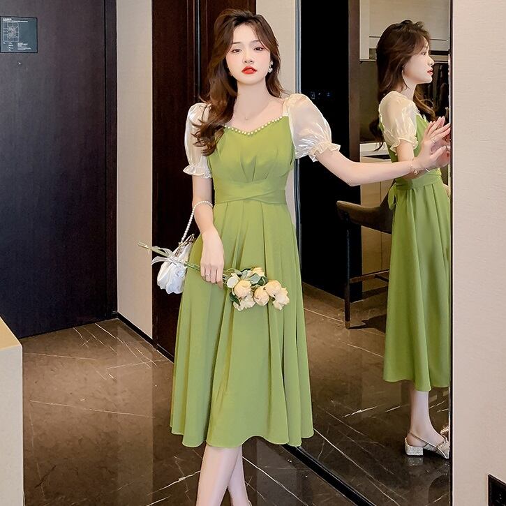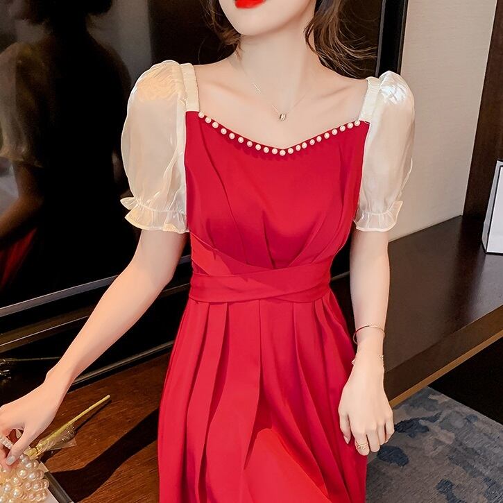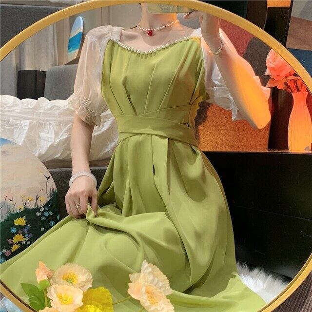 【送料無料】レディース ワンピース ドレス パール パフスリーブ バックリボン シアー お呼ばれ パーティー フォーマル 結婚式 大人可愛い ママコーデ ママファッション 韓国系 オルチャン 人気 トレンド 新作 20代 30代 40代 きれいめ レトロ シンプル お出かけ デート おしゃれ 通勤 通学 オフィス OL デイリー 普段着 ラフ カジュアル フェミニン シック ゆったり 体型カバー 着痩せ 着回し インスタ映え 春 夏 秋 CO4898
