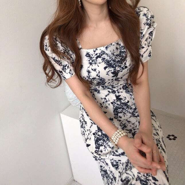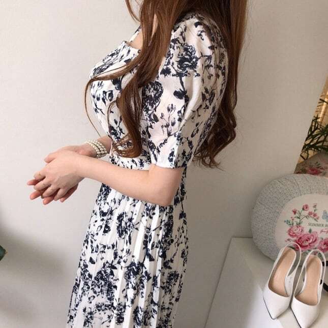 【送料無料】レディース モノトーン パフスリーブ 花柄 ワンピース スクエアネック プリーツ 大人可愛い ママコーデ ママファッション 韓国系 オルチャン 人気 トレンド 新作 20代 30代 40代 きれいめ レトロ シンプル お出かけ デート おしゃれ 通勤 通学 オフィス OL デイリー 普段着 ラフ カジュアル フェミニン シック ゆったり 体型カバー 着痩せ 着回し インスタ映え 春 夏 秋 CO4936