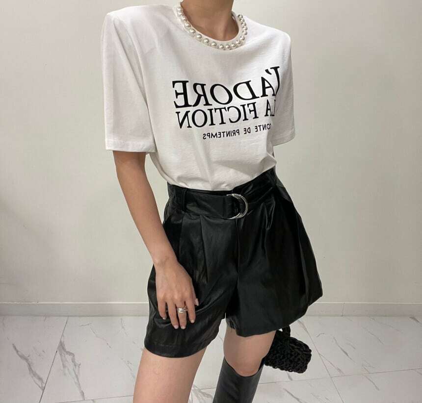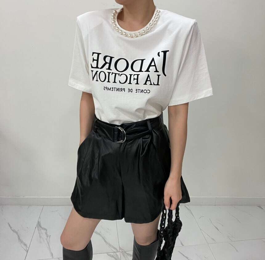 【送料無料】レディース デコルテパール 英字ロゴ Tシャツ トップス ブラック ホワイト 半袖 ビジュー 大人可愛い ママコーデ ママファッション 韓国系 オルチャン 人気 トレンド 新作 20代 30代 40代 きれいめ レトロ シンプル お出かけ デート おしゃれ 通勤 通学 オフィス OL デイリー 普段着 ラフ カジュアル フェミニン シック ゆったり 体型カバー 着痩せ 着回し インスタ映え 春 夏 秋 CO4937
