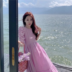 【送料無料】レディース バックリボンワンピース パワーショルダー パフスリーブ サマードレス ハイウエスト フレアワンピース ワンピース ドレス 海 バケーション 大人可愛い ママコーデ ママファッション 韓国系 オルチャン 人気 トレンド 新作 20代 30代 40代 きれいめ レトロ シンプル お出かけ デート おしゃれ 通勤 通学 オフィス OL デイリー 普段着 ラフ カジュアル フェミニン シック ゆったり 体型カバー 着痩せ 着回し インスタ映え 春 夏 秋 CO4946