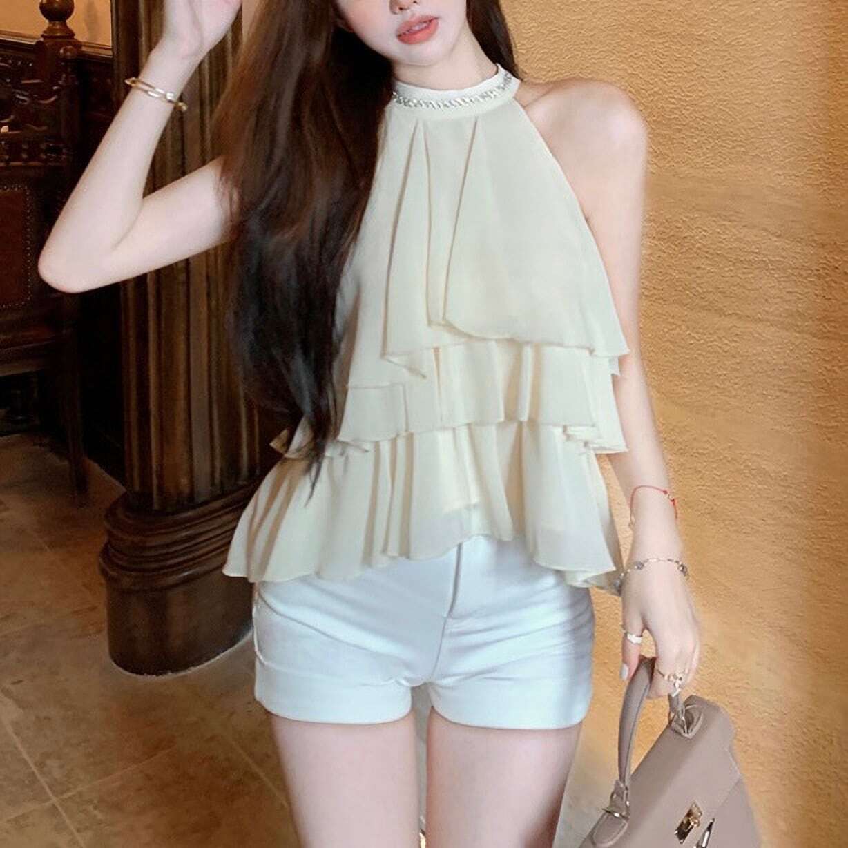 【送料無料】レディース 2色 フリル ホルターネックトップス ビジュー ティアード ノースリーブ キラキラ 大人可愛い ママコーデ ママファッション 韓国系 オルチャン 人気 トレンド 新作 20代 30代 40代 きれいめ レトロ シンプル お出かけ デート おしゃれ 通勤 通学 オフィス OL デイリー 普段着 ラフ カジュアル フェミニン シック ゆったり 体型カバー 着痩せ 着回し インスタ映え 春 夏 秋 CO4947