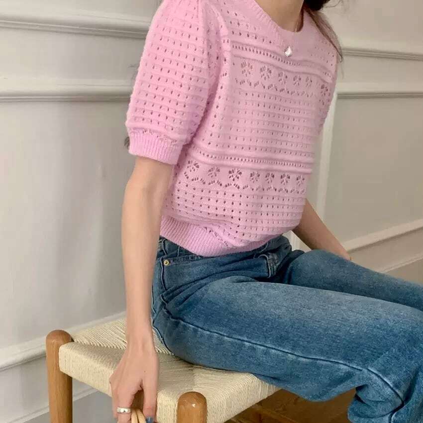 【送料無料】レディース 2color 透かし編み半袖ニットプルオーバー サマーニットトップス ラウンドネック パフスリーブ 大人可愛い ママコーデ ママファッション 韓国系 オルチャン 人気 トレンド 新作 20代 30代 40代 きれいめ レトロ シンプル お出かけ デート おしゃれ 通勤 通学 オフィス OL デイリー 普段着 ラフ カジュアル フェミニン シック ゆったり 体型カバー 着痩せ 着回し インスタ映え 春 夏 CO4959