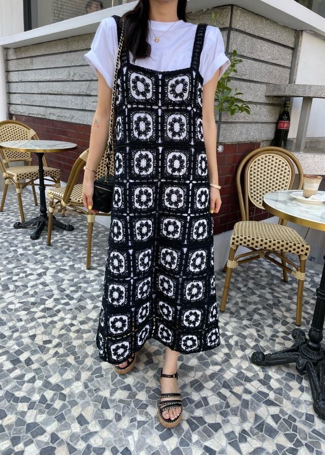 今季注目のかぎ針編みレイヤードキャミワンピが登場しました!ワイドパンツやデニムなども合わせやすいです。 カジュアルにTシャツとレイヤードしたり、タンクやキャミと合わせて