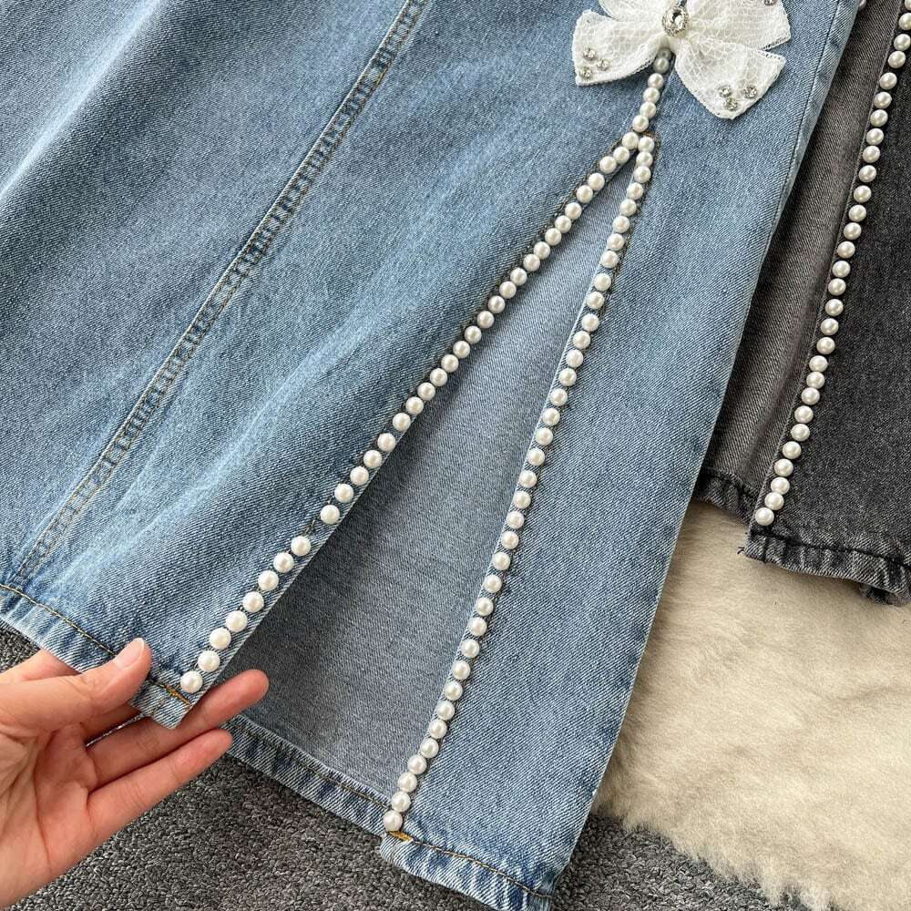 【送料無料】レディース デニムスカート サイドスリットパールリボンスカート スリット ミディ丈 膝下 大人可愛い ママコーデ ママファッション 韓国系 オルチャン 人気 トレンド 新作 20代 30代 40代 きれいめ レトロ シンプル お出かけ デート おしゃれ 通勤 通学 オフィス OL デイリー 普段着 ラフ カジュアル フェミニン シック ゆったり 体型カバー 着痩せ 着回し インスタ映え 春 夏 秋 CO4965