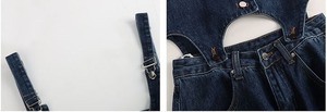 デニムオーバーオールのセットアップが登場!ウエスト部分にアクセントを施したフロントオープンタイプになっています。
