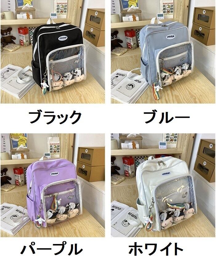 【送料無料】レディース 4色 痛バッグ 大容量 リュック ぬいぐるみ 痛バ リュックサック 痛バッグ スクエア 痛リュック 推し活 デコ ぬいぐるみバッグ オタク 透明バッグ クリア クリアバッグ デコバッグ 缶バッチ オタク活 推し 推しバッグ 韓国系 通勤 通学 CO4972