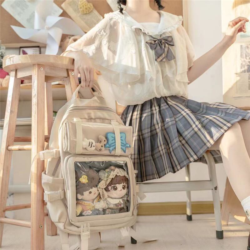 【送料無料】レディース 4色 痛バッグ 2wayミニポーチ付きリュック 痛バ リュックサック 痛バッグ スクエア 痛リュック 推し活 デコ ぬいぐるみバッグ オタク 透明バッグ クリア クリアバッグ デコバッグ 缶バッチ オタク活 推し 推しバッグ 韓国系 通勤 通学 CO4973