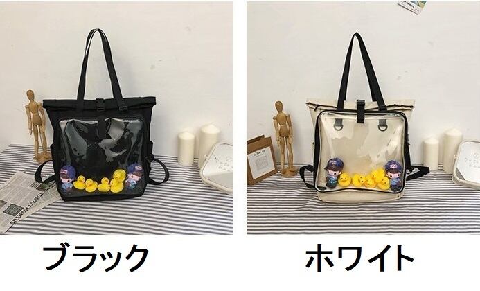 【送料無料】レディース 2色 痛バッグ 2WAY リュック&ショルダー 痛バッグ トートバッグ アヒルちゃん付 リュックサック 見せバッグ 痛バ リュックサック 痛バッグ スクエア 痛リュック 推し活 デコ ぬいぐるみバッグ オタク 透明バッグ クリア クリアバッグ デコバッグ 缶バッチ オタク活 推し 推しバッグ 韓国系 通勤 通学 CO4974