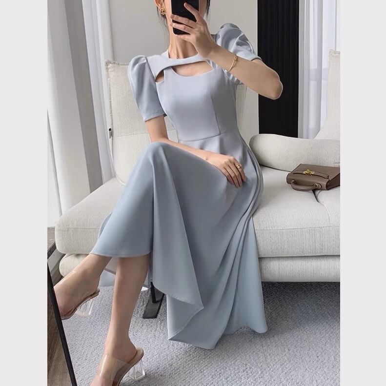 【送料無料】レディース ワンピース カットアウト 特別なデザイン レトロ 無地 ロングワンピース 水色 大きいサイズ 披露宴 ライトブルー 大人可愛い ママコーデ ママファッション 韓国系 オルチャン 人気 トレンド 新作 20代 30代 40代 きれいめ レトロ シンプル お出かけ デート おしゃれ 通勤 通学 オフィス OL デイリー 普段着 ラフ カジュアル フェミニン シック ゆったり 体型カバー 着痩せ 着回し インスタ映え 春 夏 秋 CO5005