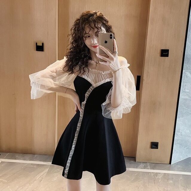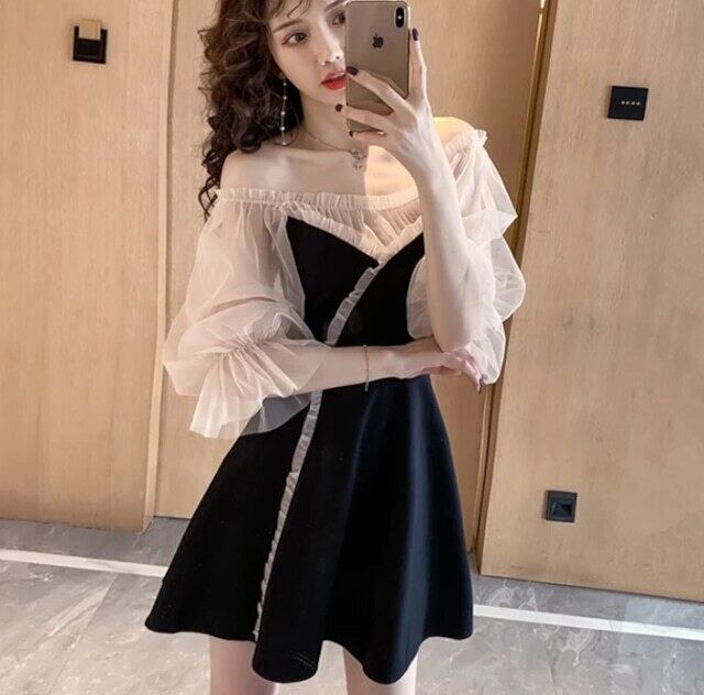 【送料無料】レディース シースルー フリル デコルテ ワンピース キャンディースリーブ Aライン オフィシャル バイカラー ミニワンピ ドレス 大人可愛い ママコーデ ママファッション 韓国系 オルチャン 人気 トレンド 新作 20代 30代 40代 きれいめ レトロ シンプル お出かけ デート おしゃれ 通勤 通学 オフィス OL デイリー 普段着 ラフ カジュアル フェミニン シック ゆったり 体型カバー 着痩せ 着回し インスタ映え 春 夏 秋 CO5008