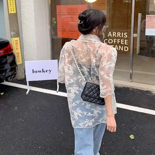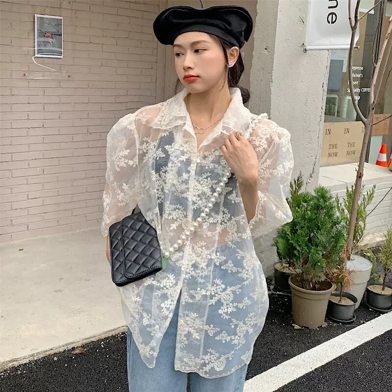 【送料無料】レディース パフスリーブ メッシュ レース シャツ 総レース ブラウス シャツ エンブロイダリー 透け感 ぽわん袖 ボリュームスリーブ 大人可愛い ママコーデ ママファッション 韓国系 オルチャン 人気 トレンド 新作 20代 30代 40代 きれいめ レトロ シンプル お出かけ デート おしゃれ 通勤 通学 オフィス OL デイリー 普段着 ラフ カジュアル フェミニン シック ゆったり 体型カバー 着痩せ 着回し インスタ映え 春 夏 秋 CO5021