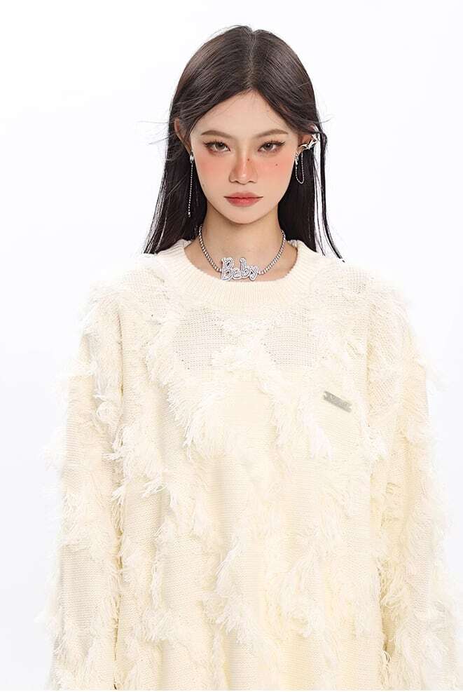 フリンジオーバーニット レディース トップス フリンジ セーター プルオーバー 長袖 ラウンドネック ストレート ストリート ふわふわ 大人可愛い ママコーデ 韓国 オルチャン 人気 トレンド 新作 20代 30代 40代 きれいめ レトロ シンプル お出かけ デート おしゃれ 通勤 通学 オフィス OL デイリー 普段着 ラフ カジュアル フェミニン シック ゆったり 体型カバー 着痩せ 着回し インスタ映え 春 秋 冬 CO5064