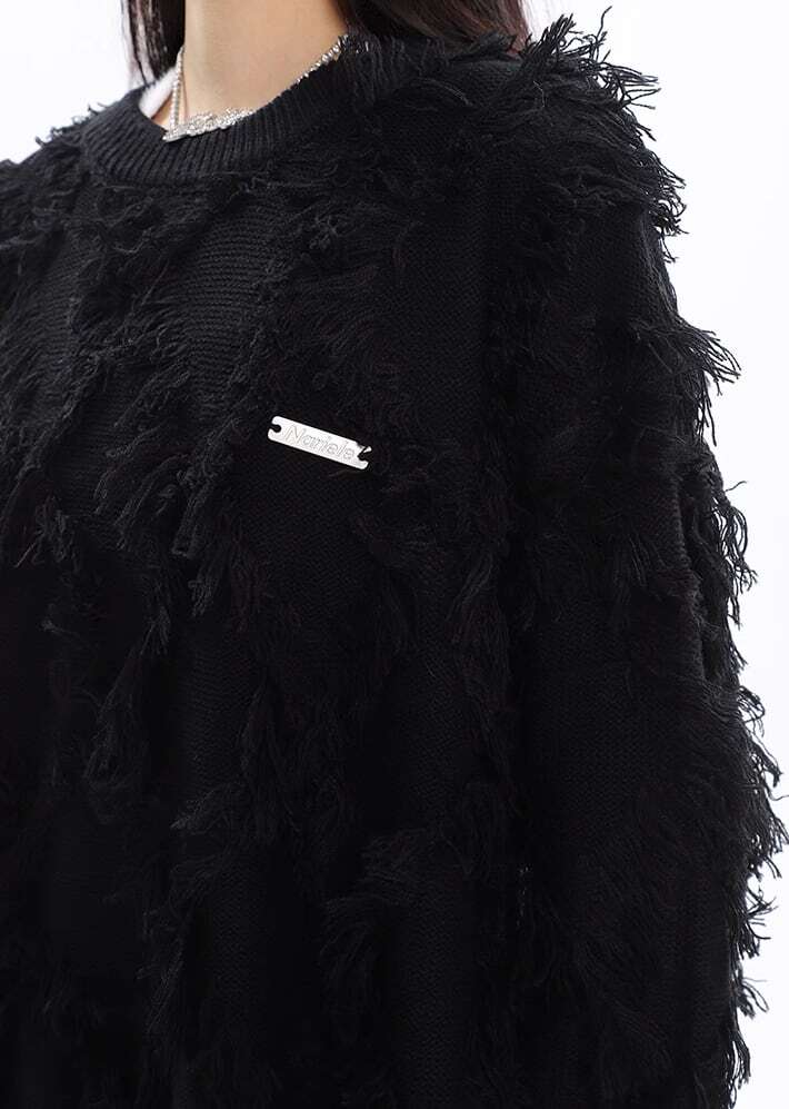 全面に施した大胆なフリンジの編み地がインパクトのあるニット。
