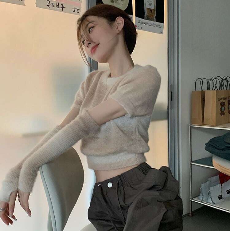 ニット トップス レディース グラデーション モヘア アームカバー ニット ふわふわ クロップド ストリート Y2K 大人可愛い ママコーデ 韓国 オルチャン 人気 トレンド 新作 20代 30代 40代 きれいめ レトロ シンプル お出かけ デート おしゃれ 通勤 通学 オフィス OL デイリー 普段着 ラフ カジュアル フェミニン シック ゆったり 体型カバー 着痩せ 着回し インスタ映え 春 秋 冬 CO5072
