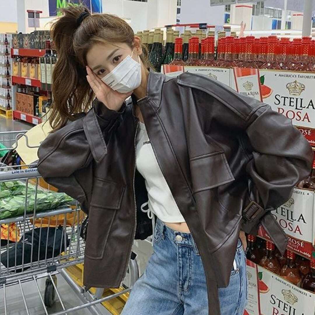 レザー ジャケット レディース オーバーサイズ フェイク レザー ジャケット アウター PU ビッグシルエット ビッグサイズ 大人可愛い ママコーデ 韓国 オルチャン 人気 トレンド 新作 20代 30代 40代 きれいめ レトロ シンプル お出かけ デート おしゃれ 通勤 通学 オフィス OL デイリー 普段着 ラフ カジュアル フェミニン シック ゆったり 体型カバー 着痩せ 着回し インスタ映え 春 秋 冬 CO5080