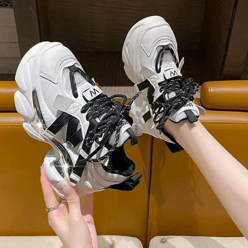 スニーカー 厚底スニーカー ダッドスニーカー レースアップ メタルポイント ボリュームソール プラットフォーム 大人可愛い ママコーデ 韓国 新作 20代 30代 40代 シューズ 靴 きれいめ かわいい おしゃれ シック カジュアル お出かけ 高見え デート 旅行 歩きやすい 履きやすい エレガント ナチュラル 美脚 通気性 安定感 通勤 通学 デイリー 普段使い 春 夏 秋 冬 CO5093