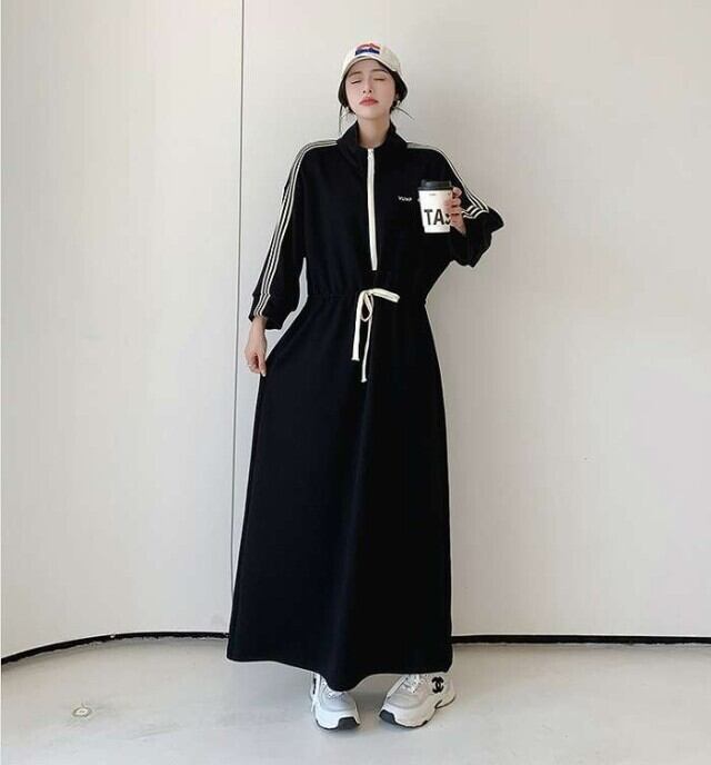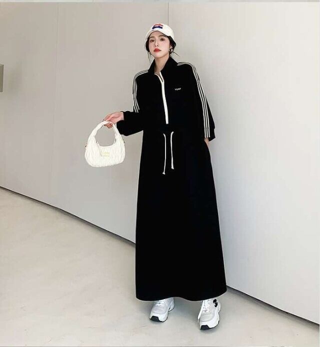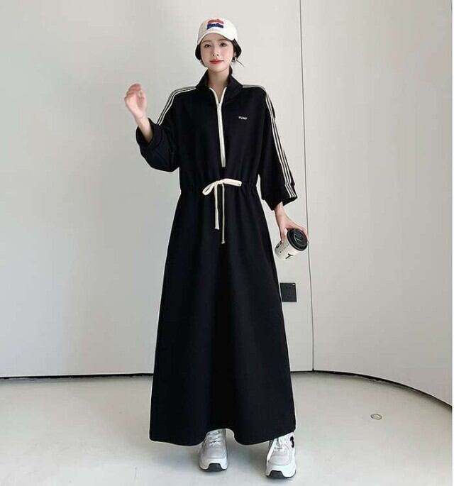 ワンピース レディース ロングワンピース 大きいサイズ ビックシルエット ロング丈 長袖 ハーフジップ リボン紐 ライン 大人可愛い ママコーデ 韓国 オルチャン 人気 トレンド 新作 20代 30代 40代 きれいめ レトロ シンプル お出かけ デート おしゃれ 通勤 通学 オフィス OL デイリー 普段着 ラフ カジュアル フェミニン シック ゆったり 体型カバー 着痩せ 着回し インスタ映え 春 秋 冬 CO5138