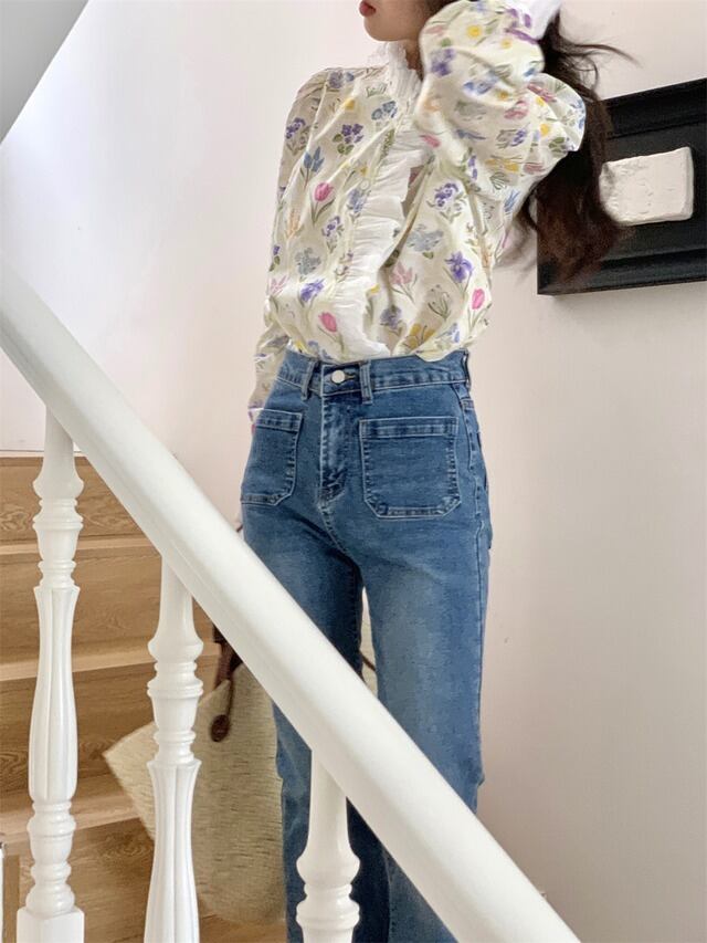 ブラウス レディース シャツ 長袖 パフスリーブ ぽわん袖 花柄 フラワー フリル 大人可愛い ママコーデ 韓国 オルチャン 人気 トレンド 新作 20代 30代 40代 きれいめ レトロ シンプル お出かけ デート おしゃれ 通勤 通学 オフィス OL デイリー 普段着 ラフ カジュアル フェミニン シック ゆったり 体型カバー 着痩せ 着回し 秋 春 CO5170