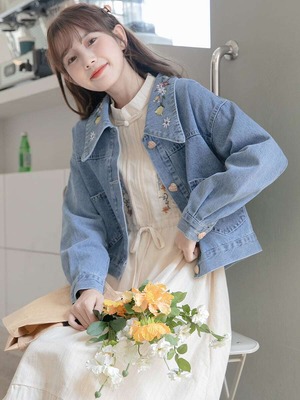 ジャケット レディース Gジャン 刺繍柄 ショート丈 アウター 長袖 デニムジャケット 襟付き ポケット 大人可愛い ママコーデ 韓国 オルチャン 人気 トレンド 新作 20代 30代 40代 きれいめ レトロ シンプル お出かけ デート おしゃれ 通勤 通学 オフィス OL デイリー 普段着 ラフ カジュアル フェミニン シック ゆったり 体型カバー 着痩せ 着回し インスタ映え 春 秋 冬 CO5185