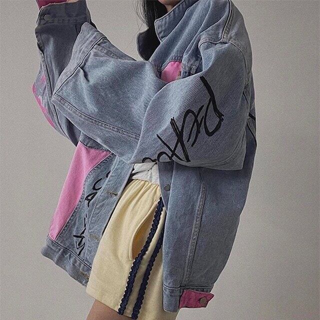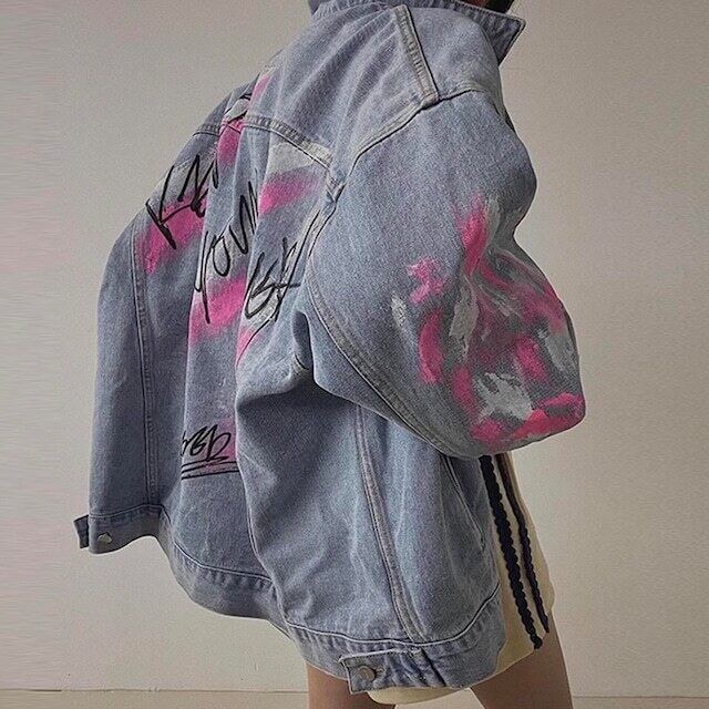 合わせやすい配色とアルファベットのデコレーションが特徴のデニムジャケット。