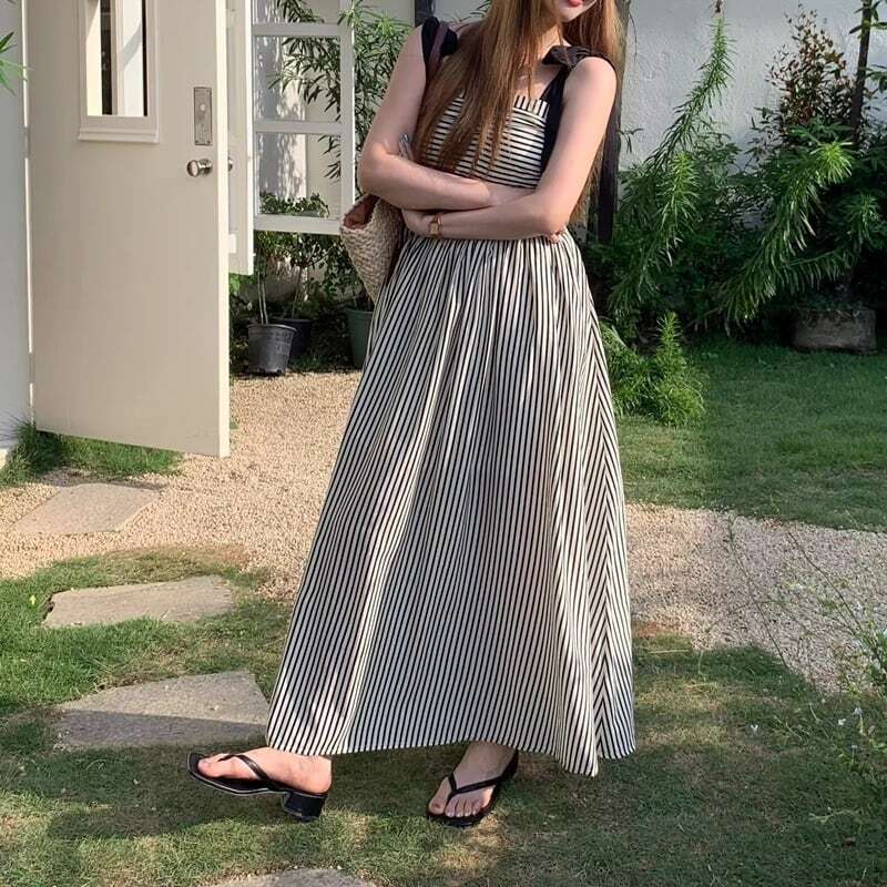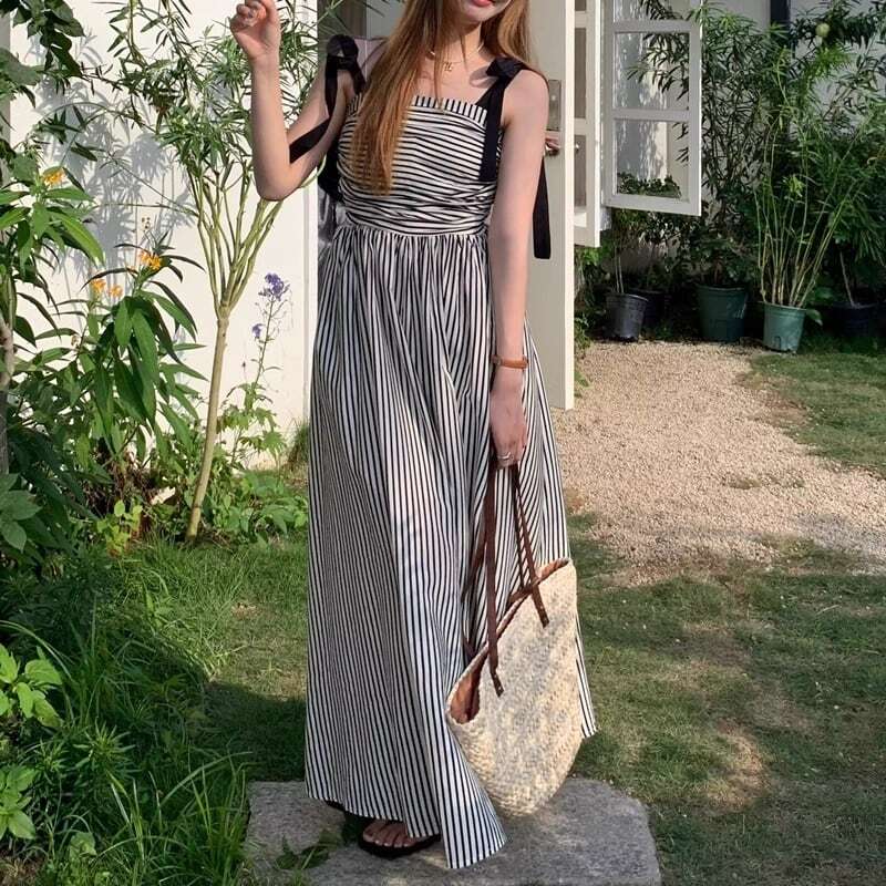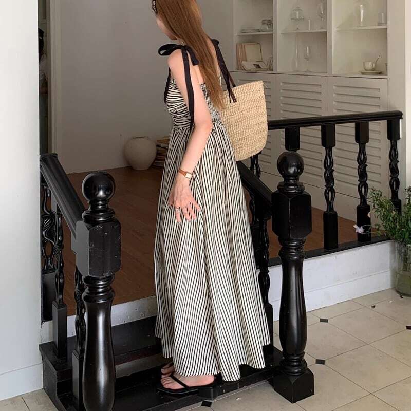 ワンピース レディース ショルダーリボンワンピース ストライプノースリーブワンピース 大人可愛い ママコーデ 韓国 人気 トレンド 新作 20代 30代 40代 きれいめ レトロ シンプル お出かけ デート おしゃれ リゾート デイリー 普段着 ラフ カジュアル フェミニン シック ゆったり 体型カバー 着痩せ 着回し 春 夏 CO5225