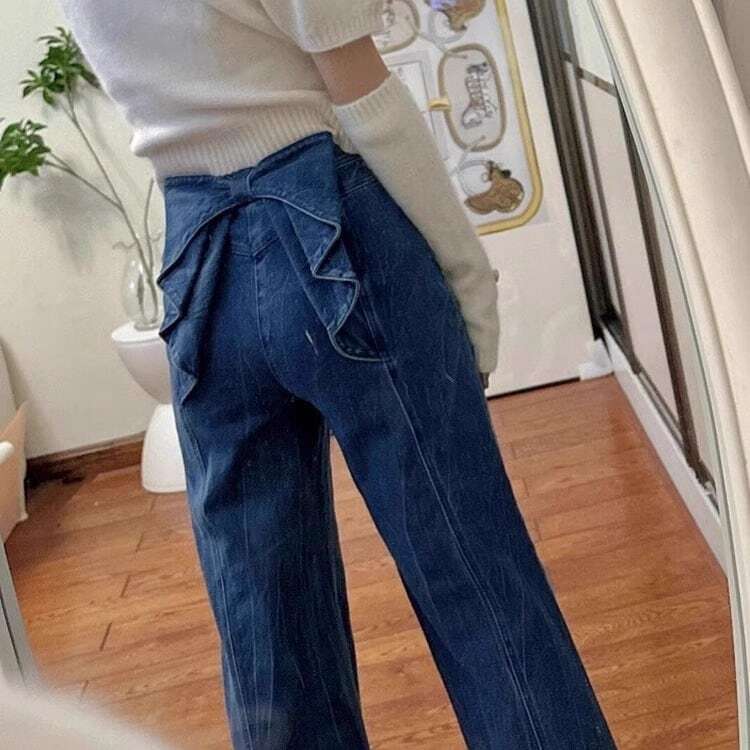 パンツ レディース フリルバックリボンデニムパンツ デニムパンツリボン ストレートワイドレッグデニム 大人可愛い ママコーデ 韓国 オルチャン 人気 トレンド 新作 20代 30代 40代 きれいめ レトロ シンプル お出かけ デート おしゃれ 通勤 通学 オフィス OL デイリー 普段着 ラフ カジュアル フェミニン シック ゆったり 体型カバー 着痩せ 着回し 秋 春 夏 CO5234
