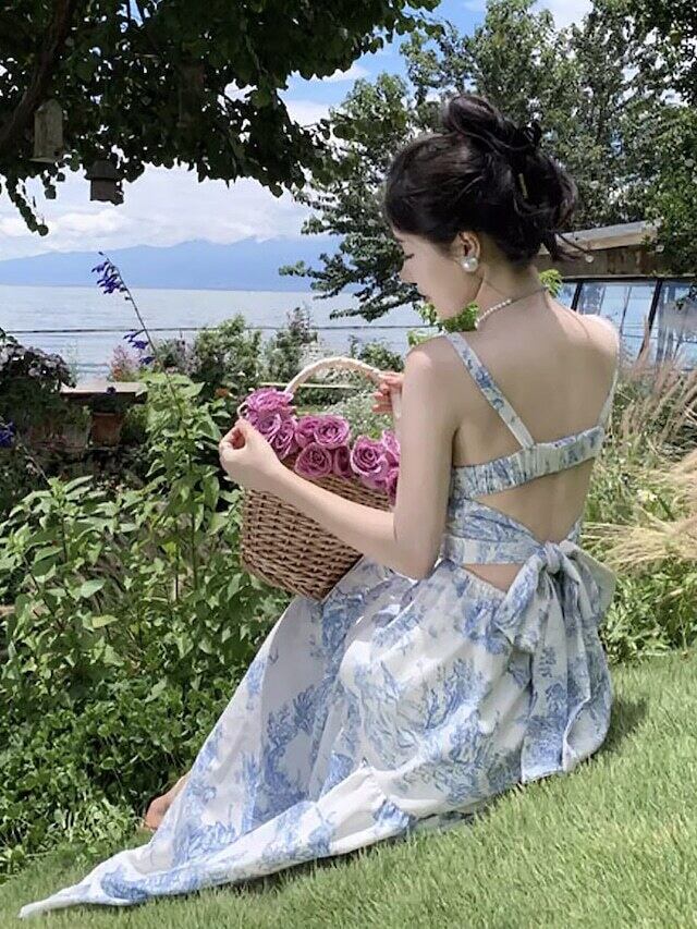 水彩画のような美しい柄が特徴のトワルドジュイ柄バックコンシャスワンピース。背中の大胆なリボンデザインとキャミソールワンピースが、優雅なリゾートスタイルを演出します。Aラインのシルエットとウエストマークが女性らしいボディラインを引き立て、ロング丈が大人可愛い雰囲気を演出します。デートやリゾート、お出かけなど様々なシーンで活躍すること間違いなし。着痩せ効果も期待できる嬉しいデザインです。春夏の着こなしに新たな魅力を加える、最旬アイテムとしてぜひお試しください^^