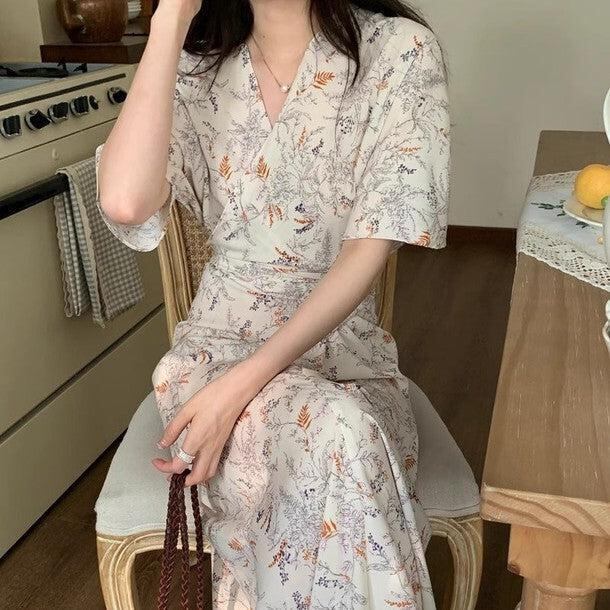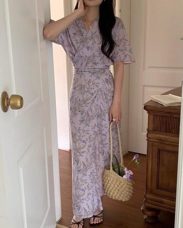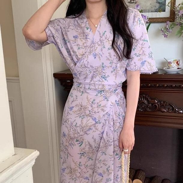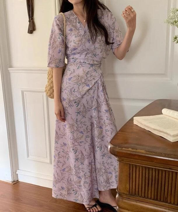 ワンピース レディース 全2色 フローラルラップワンピース 花柄モチーフ Vネック シフォンワンピ 大人可愛い 韓国 人気 トレンド 新作 20代 30代 40代 きれいめ お出かけ デート おしゃれ デイリー 普段着 フェミニン ゆったり 体型カバー 着痩せ 着回し 春 夏CO5273